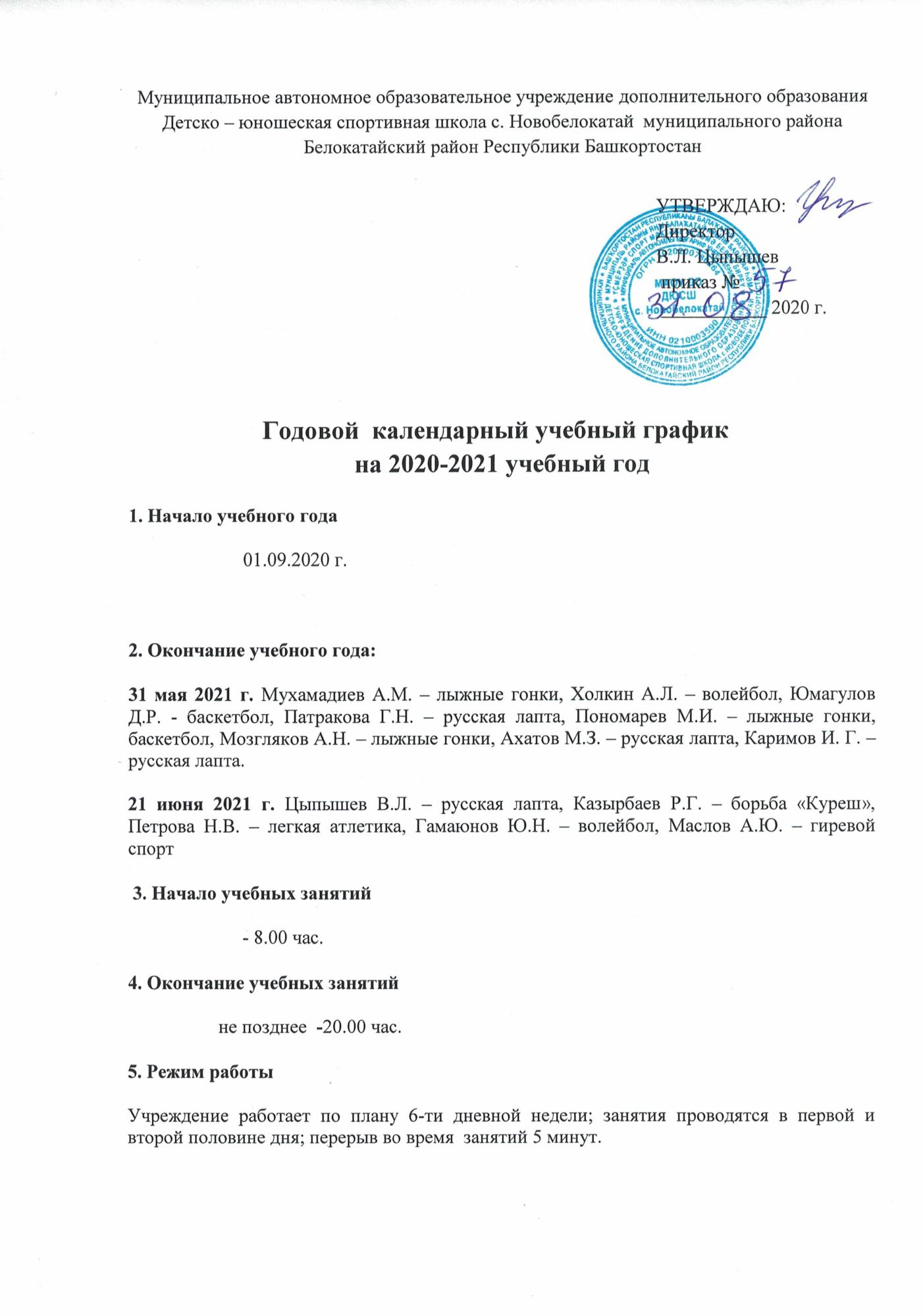 Годовой календарный учебный график на 2020-2021 г.